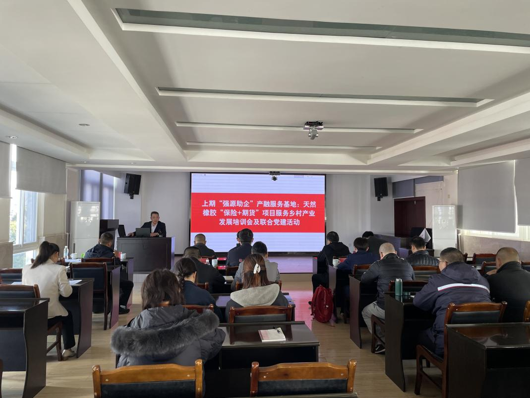 合作開展“保險(xiǎn)+期貨”項(xiàng)目的同時(shí),上海中期與中國人民財(cái)產(chǎn)保險(xiǎn)股份有限公司紅河州分公司、金平縣政府開展了天然橡膠“保險(xiǎn)+期貨”項(xiàng)目服務(wù)鄉(xiāng)村產(chǎn)業(yè)發(fā)展培訓(xùn)會及聯(lián)合黨建活動?;顒臃窒砹它h建經(jīng)驗(yàn)做法,開展了“保險(xiǎn)+期貨”知識專題培訓(xùn),并簽署了黨組織結(jié)對幫扶協(xié)議。