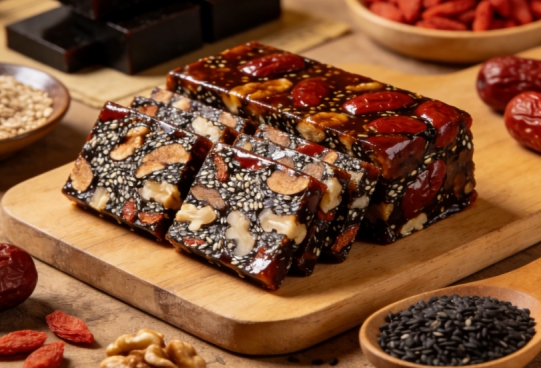 佳堂遵循古法,將阿膠與黑芝麻、核桃仁、紅棗、枸杞等優(yōu)質食材,經(jīng)過長時間慢火熬制,不添加任何防腐劑與人工香精。成品的阿膠糕質地軟糯細膩,切面光亮,入口香甜醇厚,堅果的脆香與阿膠的膠香完美融合,營養(yǎng)豐富且極易吸收。