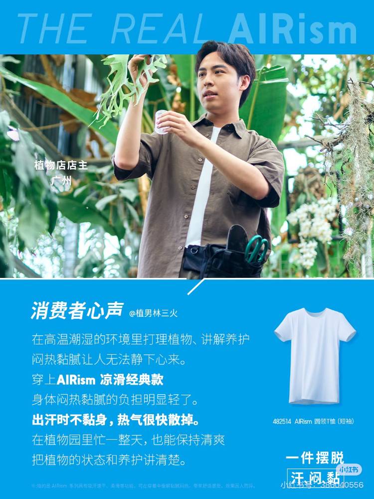 抖音刷到一個(gè)高贊視頻,博主表達(dá)了對(duì)優(yōu)衣庫(kù)廣告的好感。 畫(huà)面上的京劇演員貼身穿著優(yōu)衣庫(kù)T恤,外面是層疊厚重的戲服,不需要太多的文案,吸濕的產(chǎn)品賣點(diǎn)就立住了。 搜了下這系列海報(bào),優(yōu)衣庫(kù)還找了牙醫(yī)、主廚、陶藝家、大排檔主理人、植物店店主等長(zhǎng)期需要在高溫潮濕環(huán)境里工作的普通人。 這些人都不是標(biāo)準(zhǔn)意義上的KOL,而是各自領(lǐng)域里有手藝、有尊嚴(yán)感的勞動(dòng)者。這說(shuō)明了,產(chǎn)品功能是服務(wù)于真實(shí)的、具體的、正在勞動(dòng)中的人的,而不是服務(wù)于一個(gè)想象中的生活方式。