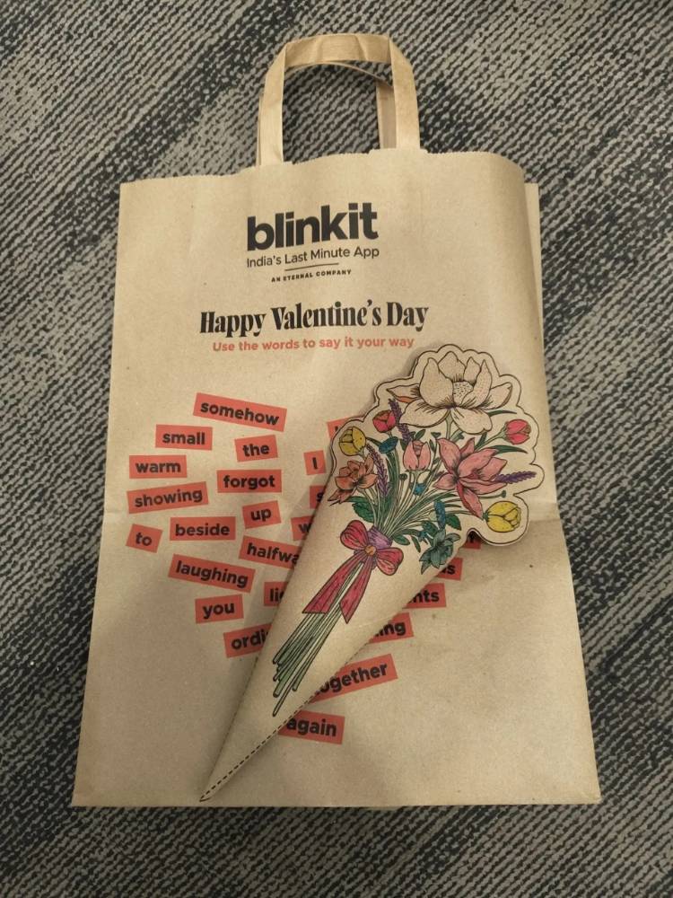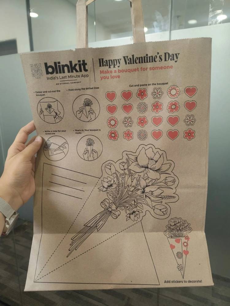 印度即時(shí)零售平臺(tái)blinkit曾在情人節(jié)出過(guò)的一款紙袋。