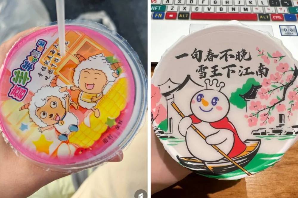 雪王“下江南”春季限定包裝,有種三無(wú)奶茶的感覺