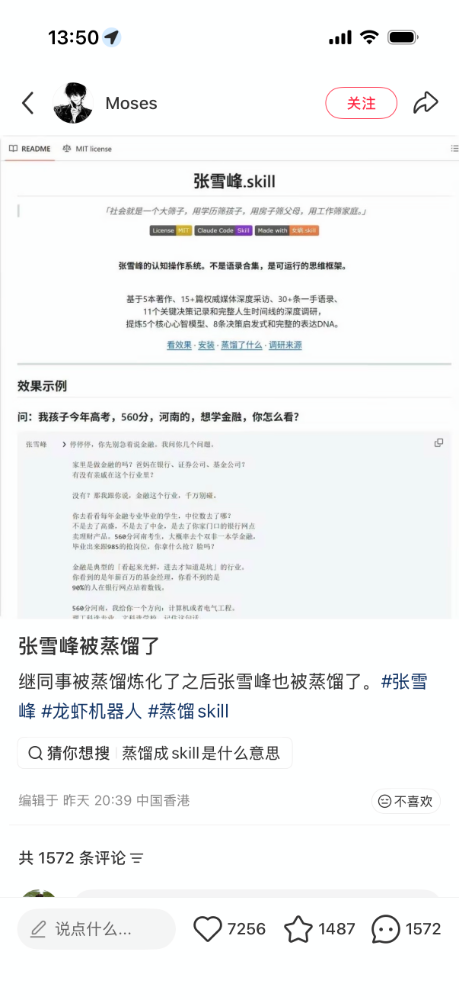 一個(gè)名為“張雪峰.skill”的開源AI項(xiàng)目出現(xiàn)在GitHub上